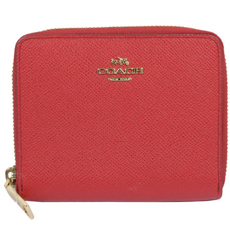 COACH 馬車LOGO防刮荔枝皮革拉鍊中短夾.紅 ![]() |